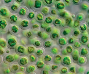These plant-like cells use photosynthesis to convert sunlight into organic nutrients that form their structure. Because they are microscopic and suspended in water, they are able to capture light efficiently while drawing in minerals from their environment. Using chlorophyll and other natural pigments, they convert carbon dioxide in the water into organic compounds that become the building blocks of their cells.